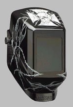 The Headturner Hellraiser Welding Helmet With Standard Shade 10 Lens offers a narrow shell design that is perfect for work in tight spaces. The hood weights only 13.8 ounces, and comes with a unique skull, crossbones, and barbed wire design